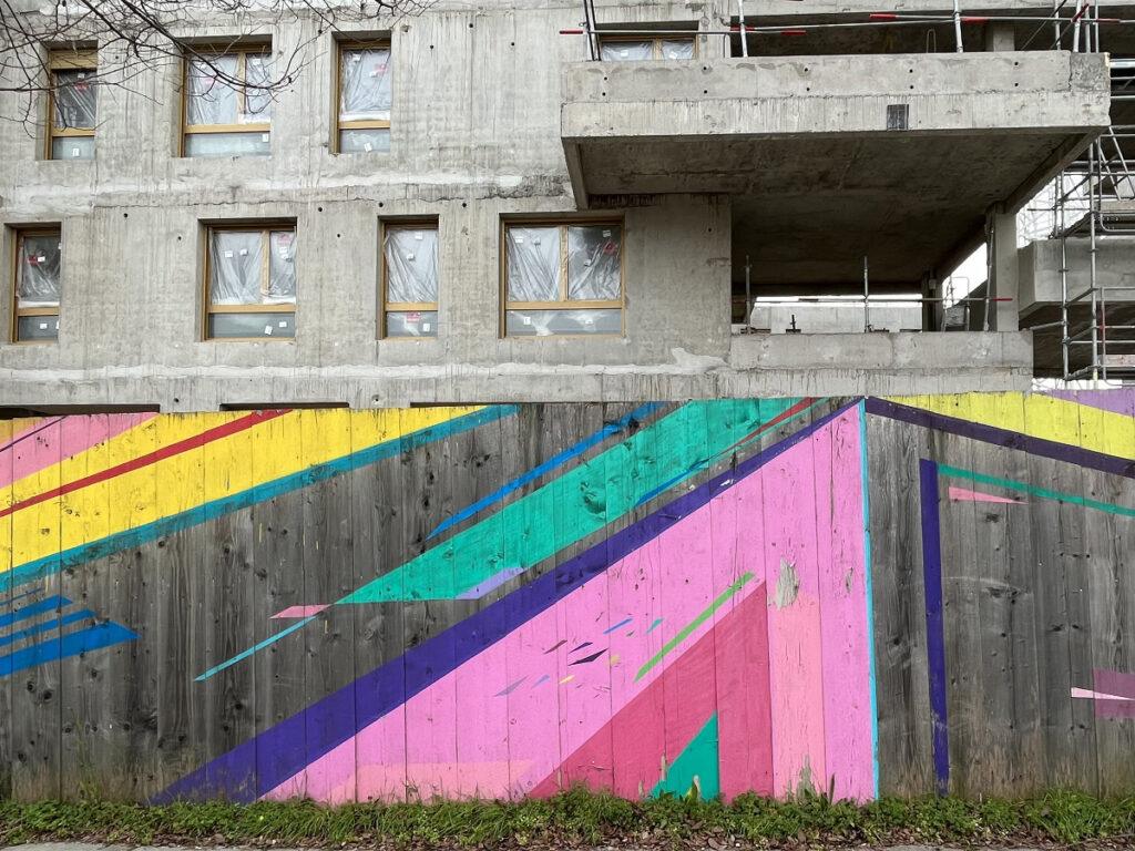 Deux fresques peintes en décembre 2018 ont aujourd’hui disparu. Alexandra Arango, artiste plasticienne originaire de Colombie, avait peint pour le projet immobilier Opale sur une large palissade en bois de la rue Bougainville. Sur des aplats de couleurs, elle avait dessiné des silhouettes de visages, des éléments végétaux et des oiseaux. Non loin de là, l’artiste serbe Artez agrémentait une autre palissade de chantier de plusieurs dizaines de mètres rue Amerigo Vespucci. Cette œuvre pour le projet immobilier Réflexions représentait une jungle de grands éléments végétaux colorés ; dans cette jungle, un personnage avec un miroir semblait interpeller les passants.