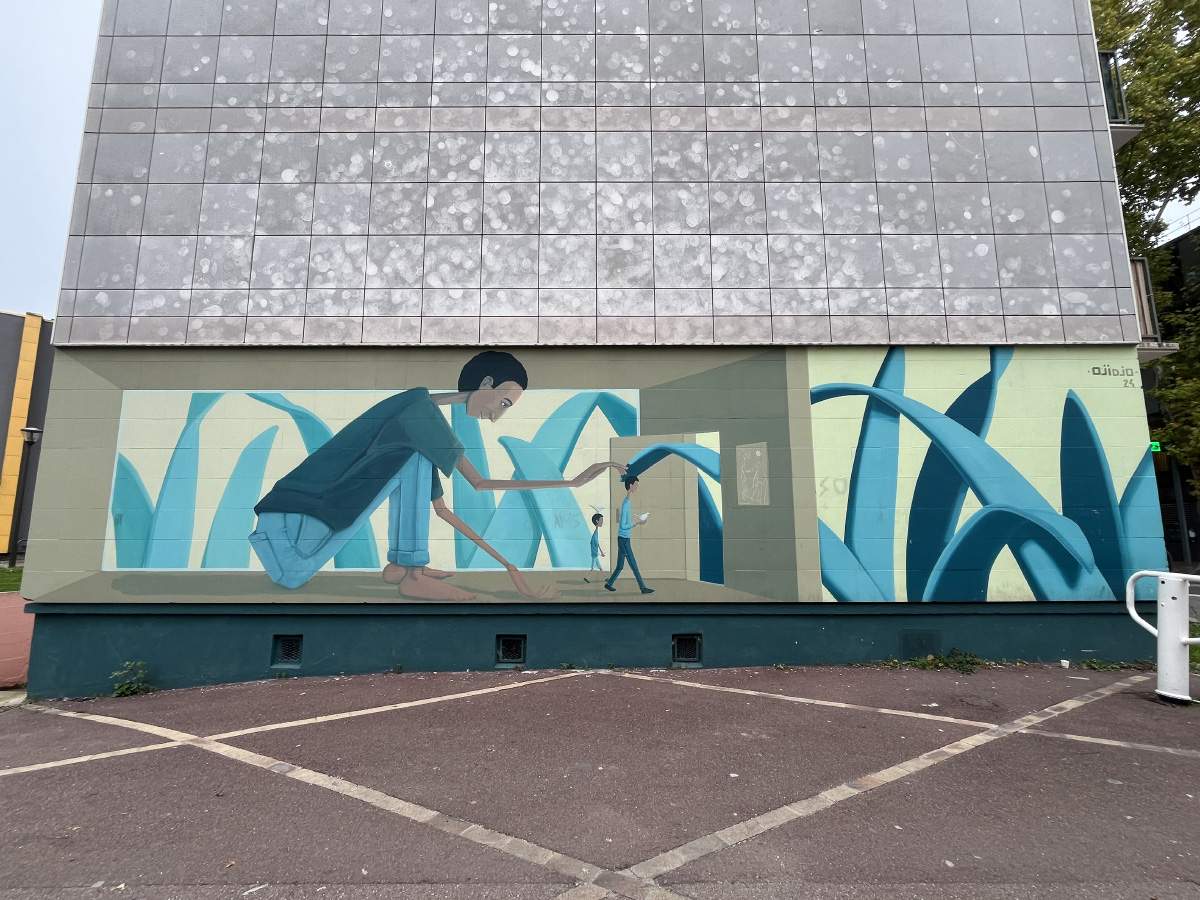 La fresque la plus monumentale de Massy a été peinte 5 avenue de Bourgogne en septembre 2021, en moins d’une semaine, par un artiste de réputation internationale, Oji.