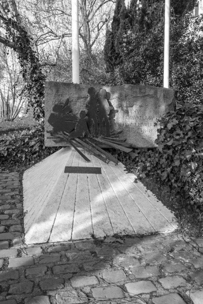 À l’angle de la rue de Longjumeau et de l’avenue de l’Europe, est érigée une stèle de 3 m de long, 1,60 m de large et d’une hauteur d’1,65 m. Elle est constituée de deux parties : un socle en pierre peint en blanc, de forme pyramidale, sur lequel est clouée une plaque en métal de 40 cm de longueur sur 10 cm de large, où est écrit :