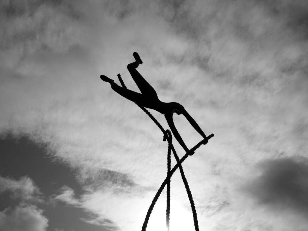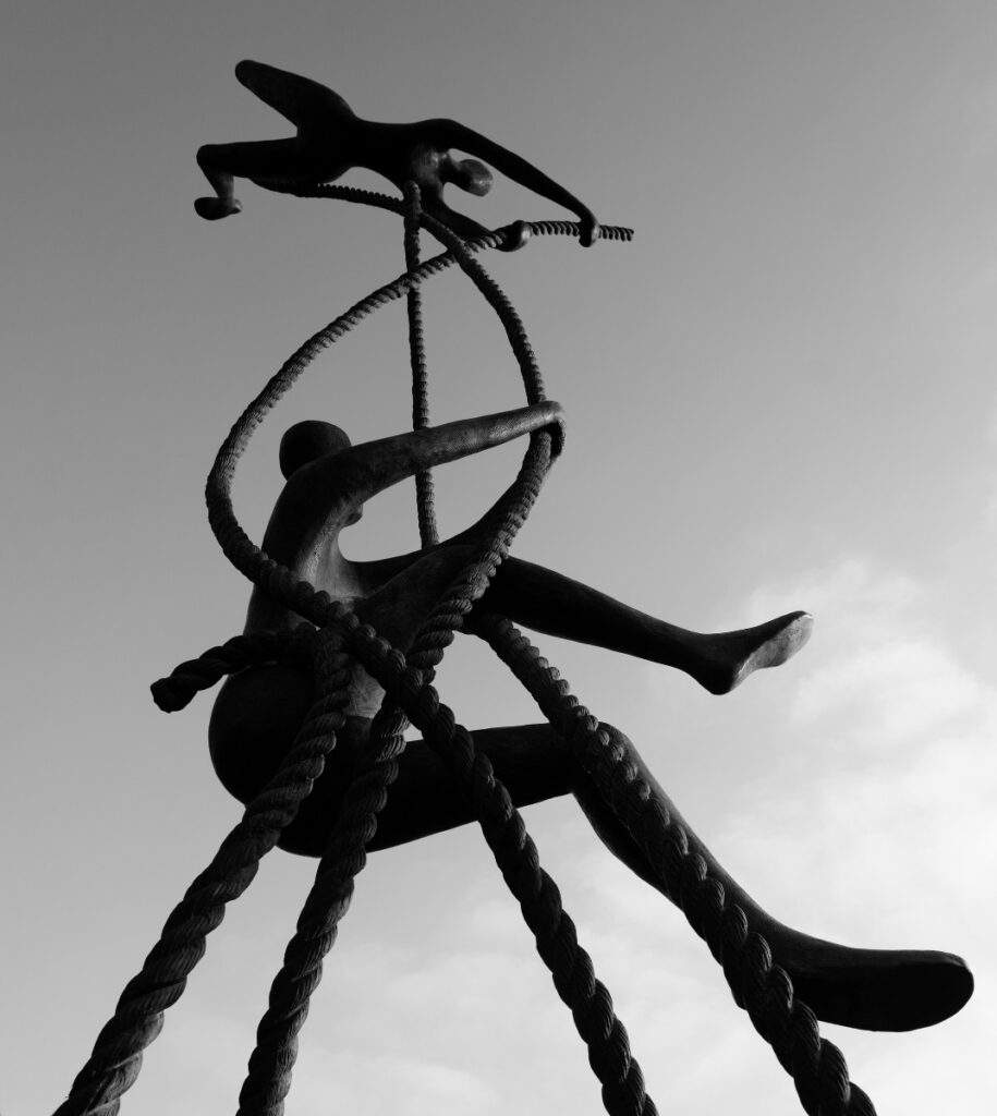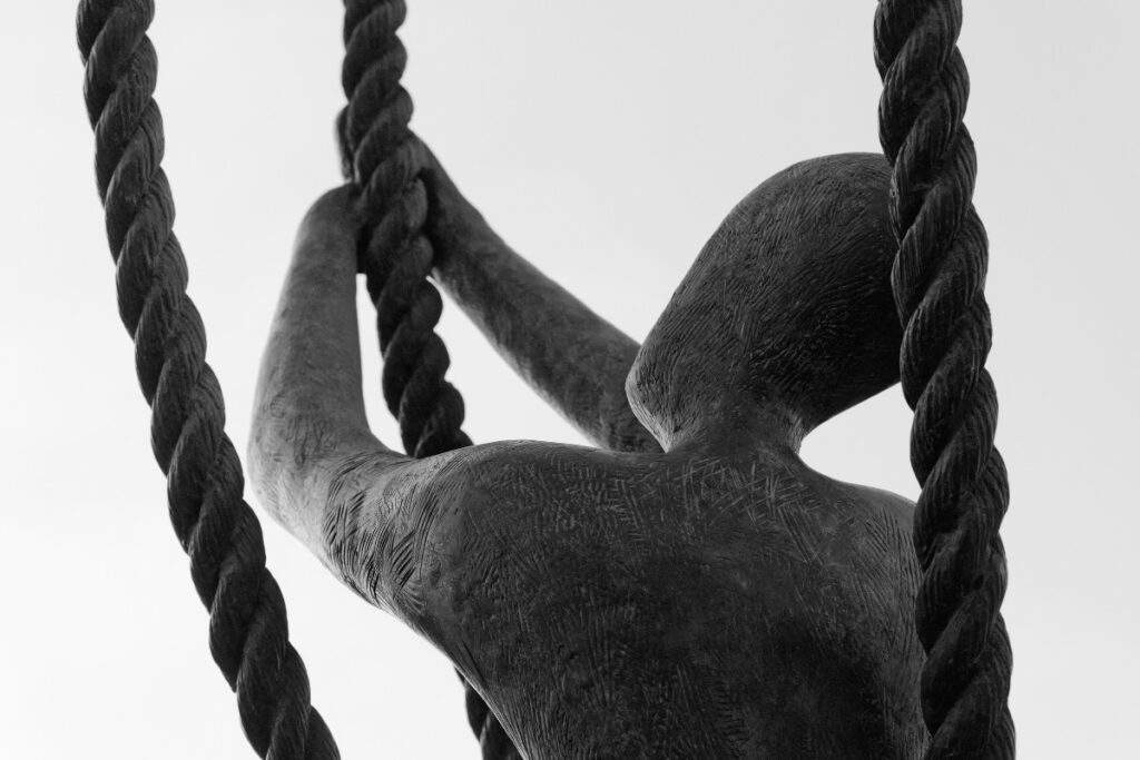 Cette sculpture, impressionnante par sa hauteur et ses formes élancées, pourrait à elle seule résumer la conception de l’art de la sculptrice et son inspiration philosophique. Le mouvement est suggéré entre tension et équilibre. Ses sculptures, au sens propre et figuré, semblent suspendues dans une sorte de réalité aérienne. Pour cela, elle utilise souvent la métaphore de l’ascension à partir de divers accessoires, grâce auxquels ses personnages, comme ceux de Massy avec une corde, réalisent leurs aspirations. D’autres fois, ils gravissent des escaliers ou des échelles. Selon l’artiste qui pose les questions universelles concernant les raisons de vivre et la complexité de l’univers, nous avons tous un chemin individuel que nous devons parcourir pour atteindre notre objectif spirituel.